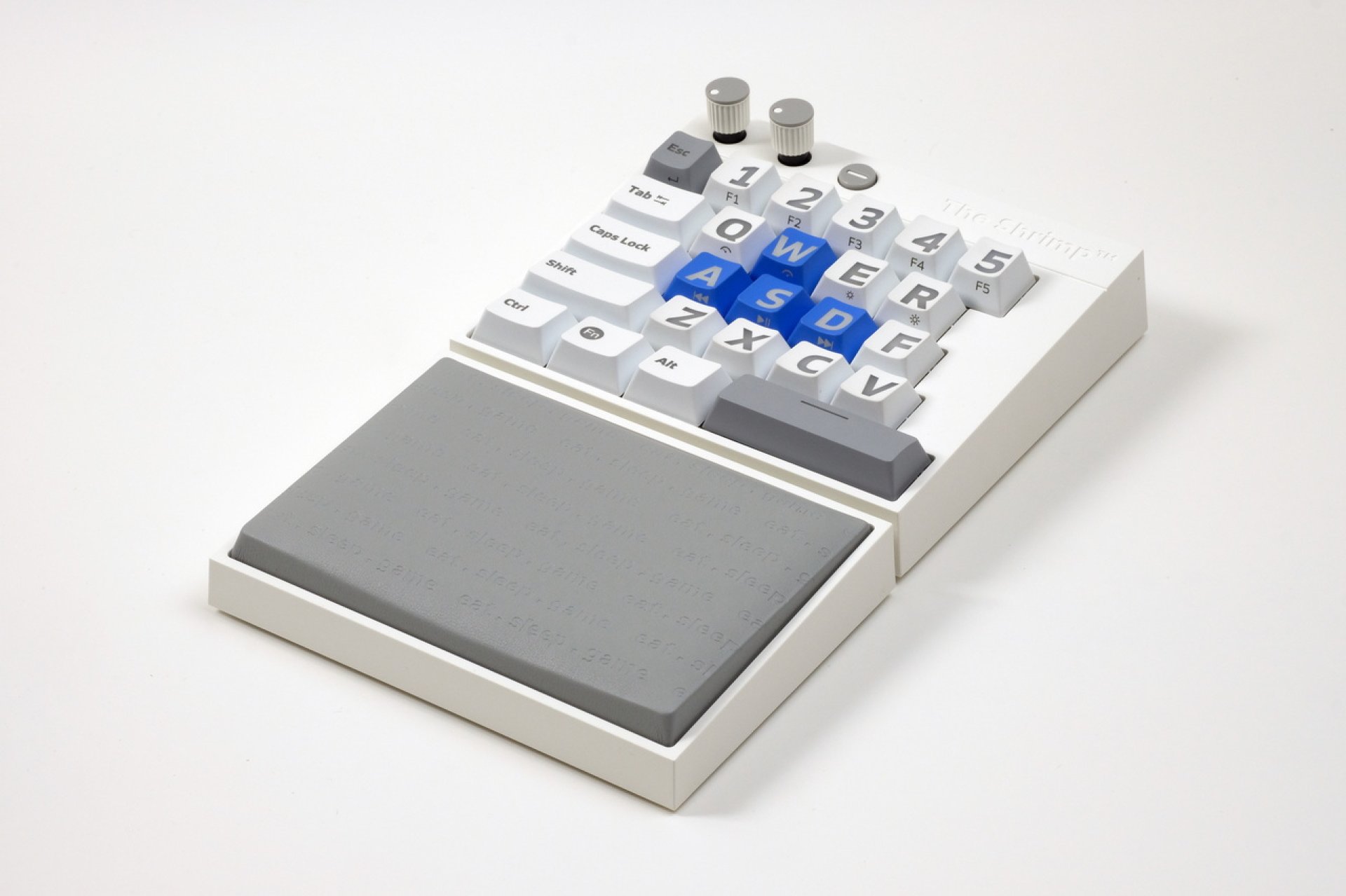 The Shrimp จะเหมือนคีย์บอร์ดหั่นครึ่ง เชื่อมต่อผ่าน USB-C เท่านั้นครับ ยังไม่มีไร้สาย ... คีย์บอร์ดตัวนี้มาพร้อมสวิตส์ Gateron G PRO Yellow sw ... wrist rest หรือที่รองข้อมือ ที่ให้มาด้วยนั้น จะเป็นหนังแบบนุ่ม เวลาใช้งานจะติดเข้ากับตัวคีย์บอร์ดด้วยแม่เหล็ก และสามารถถอดออกได้ หากไม่ต้องการใช้