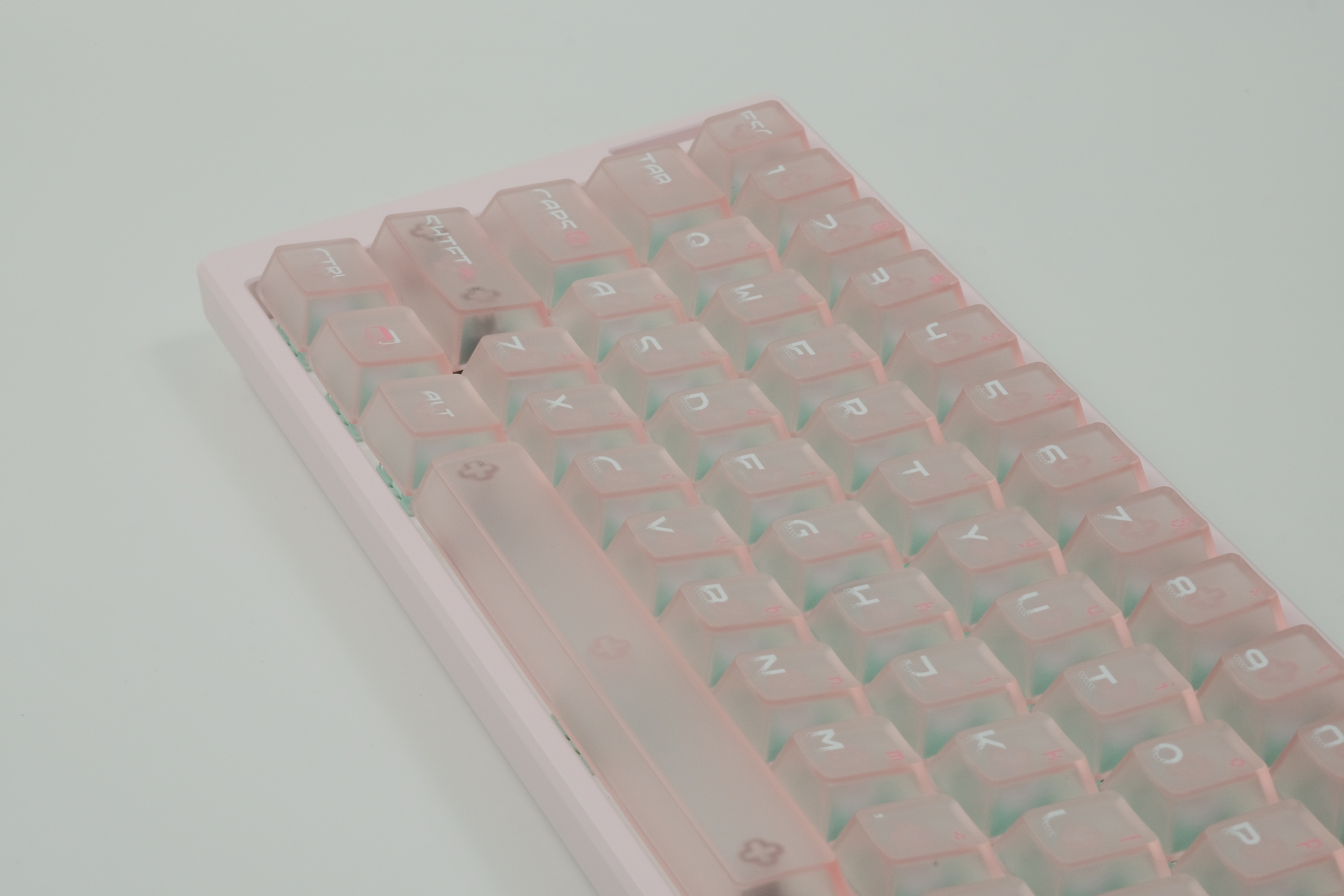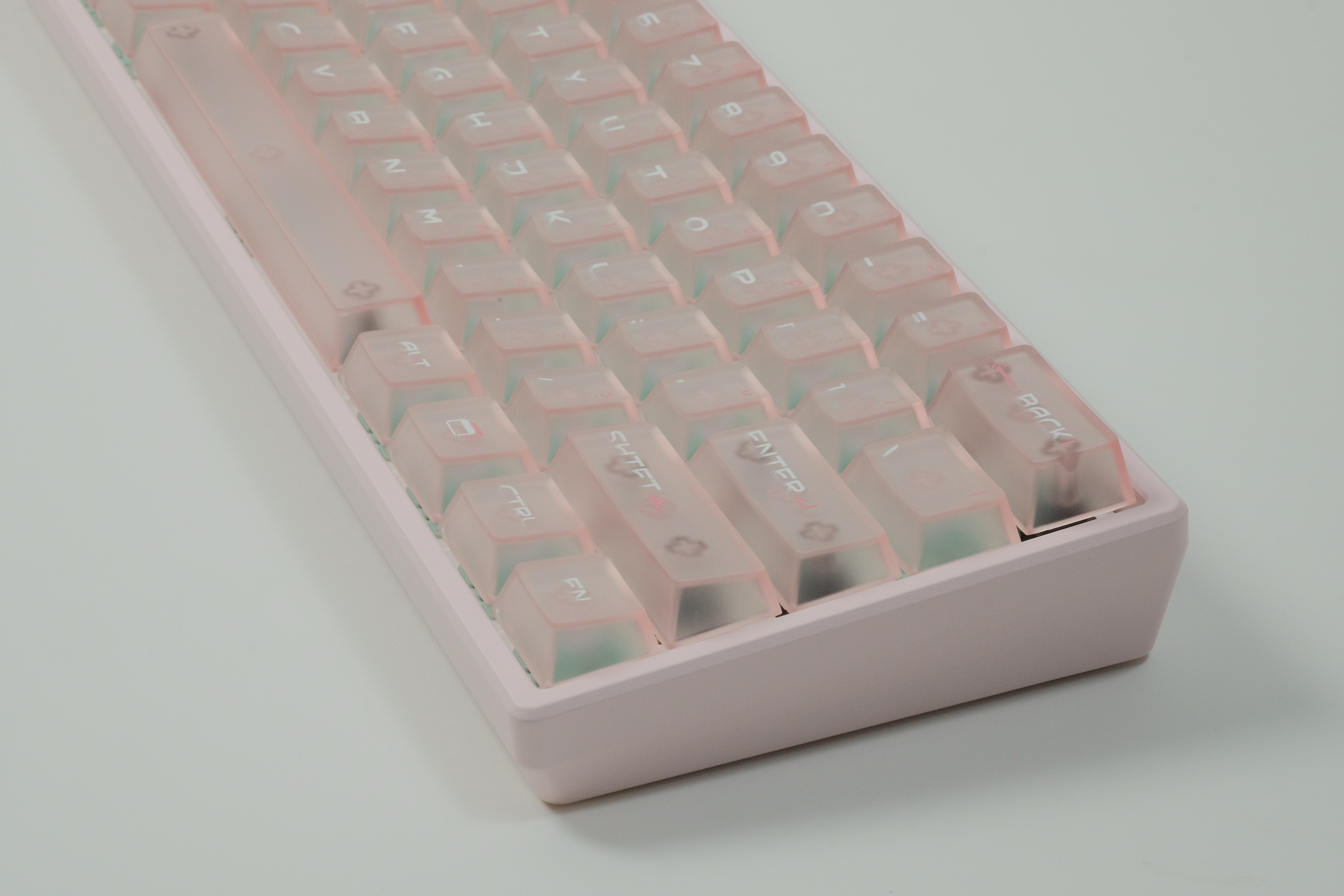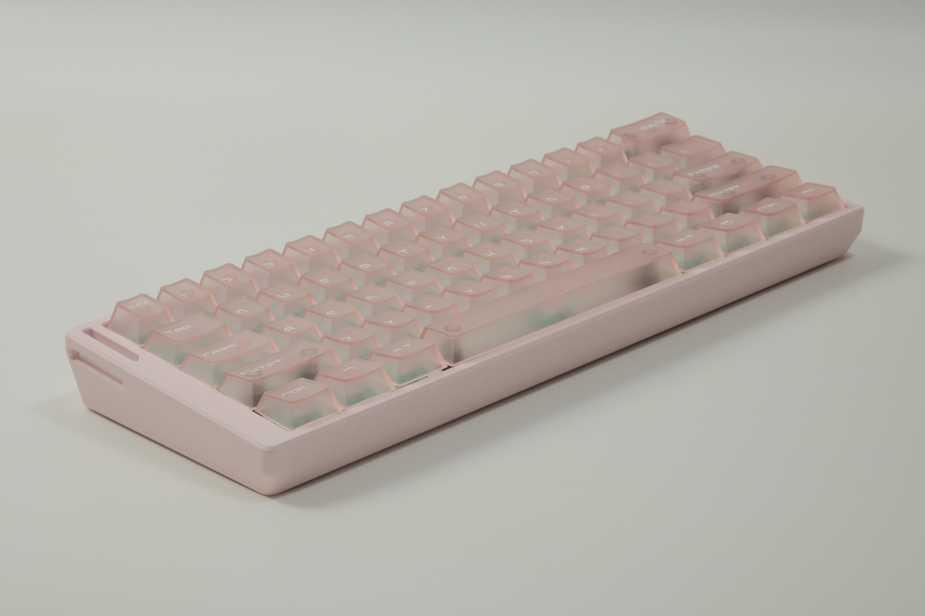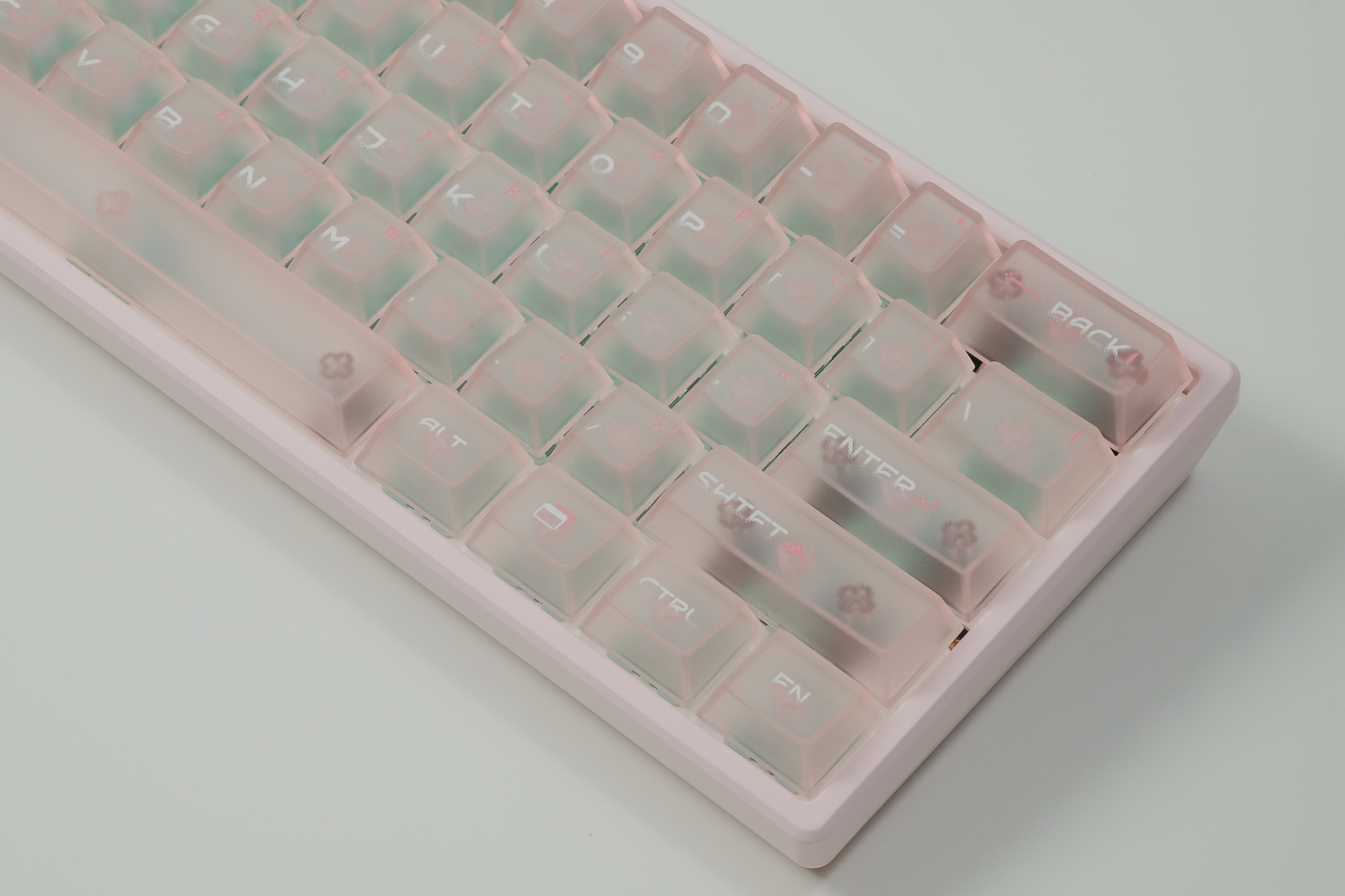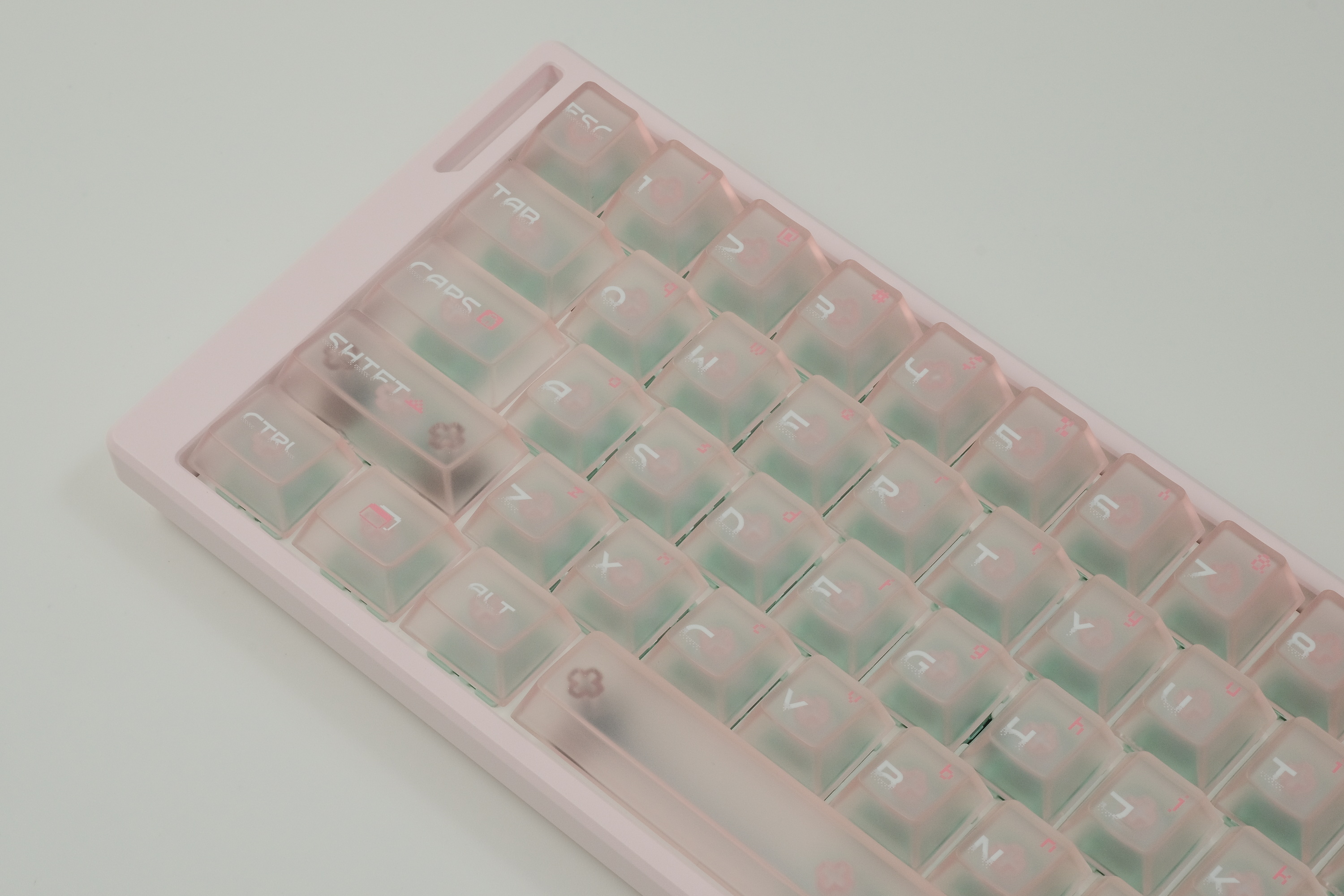 บิวท์นี้เป็นงาน Wooting 60HE รีบิวท์ใหม่เกือบหมด ... เปลี่ยนเคสเป็น อลูฯ ... เปลี่ยนสวิตส์เป็น Gateron JADE Pro ... เปลี่ยน stabilizer เป็น Designer Studio และ ใช้คีย์แค้ปเป็น FRONTIER keycaps set ซึ่งเป็นคีย์แค้ปใส่ ... เซ็ทนี้โทนชมพู สีเคส และคีย์แค้ปไปด้วยกันอย่างลงตัวครับ