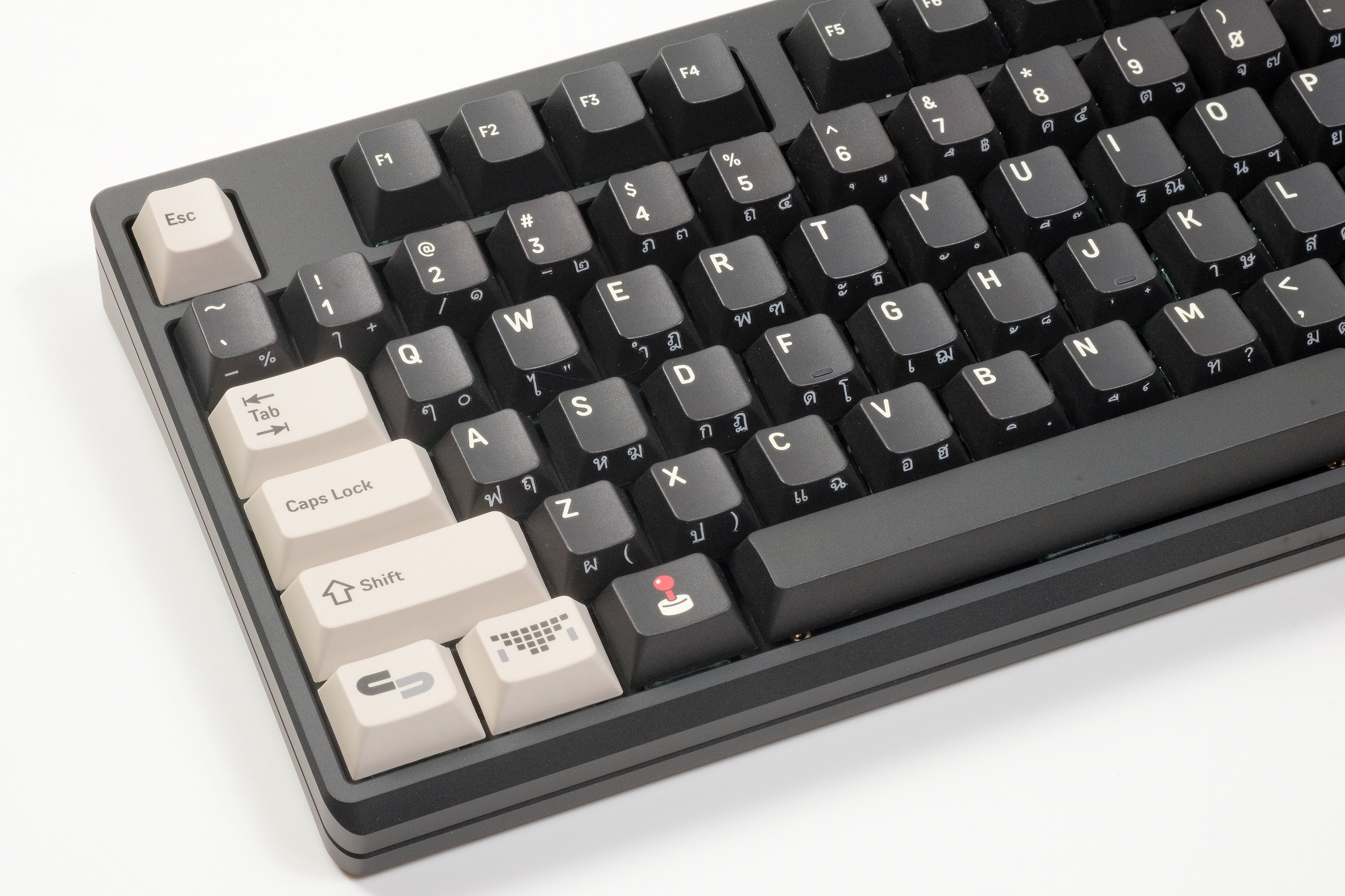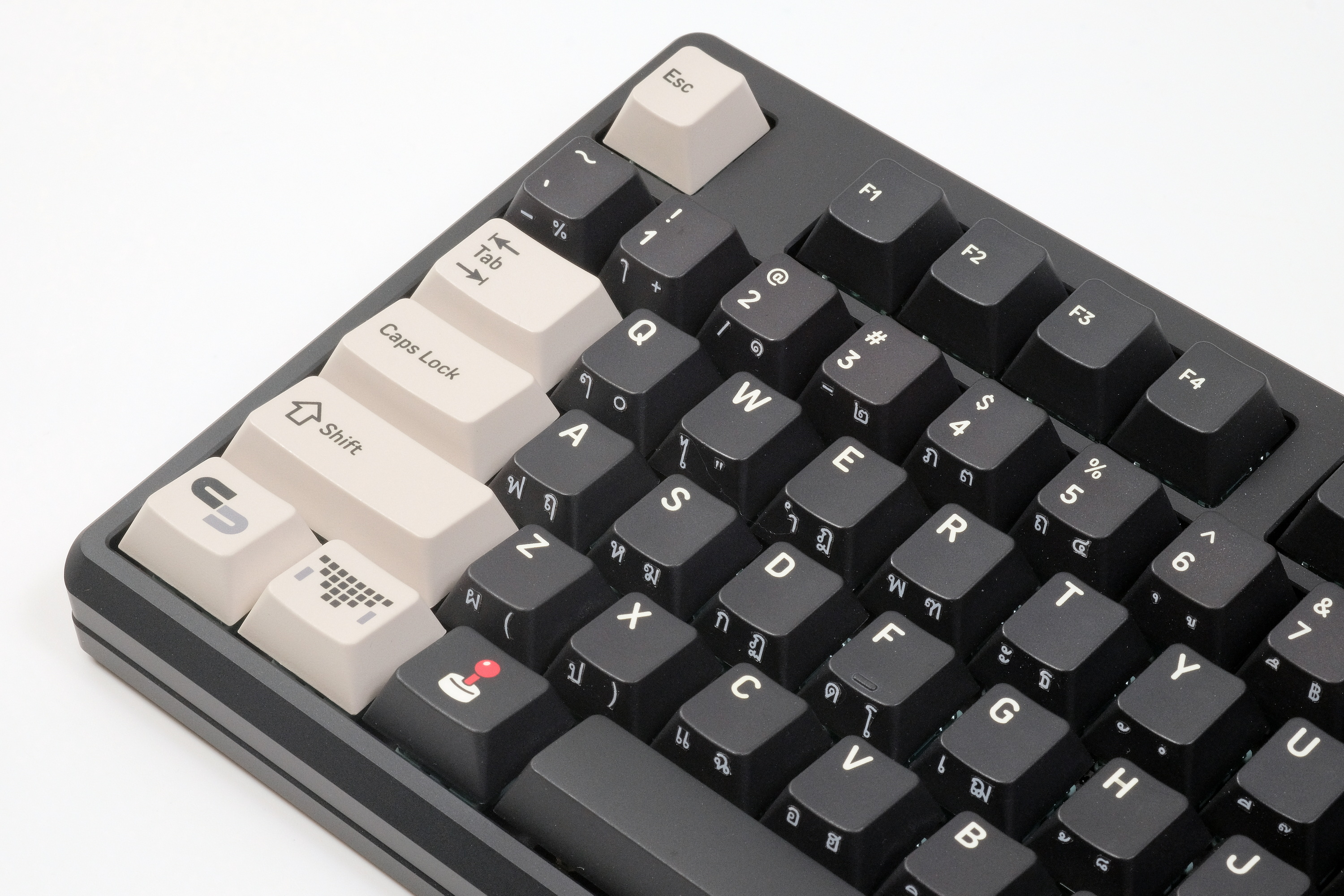 เคสตรงรุ่น แบบไม่ต้องดัด ต้องแปลง ต้องตัด ต้องต่อ อะไรใดๆ GEONWORKS Frog TKL leggera ครับ มาพร้อมเพลทอลู ... เซ็ทนี้คุมโทนเข้มๆ ด้วยคีย์แค้ป FBB 464 Sand ... เพิ่ม decall ภาษาไทยโดย 6664 mech Keyboard Mod