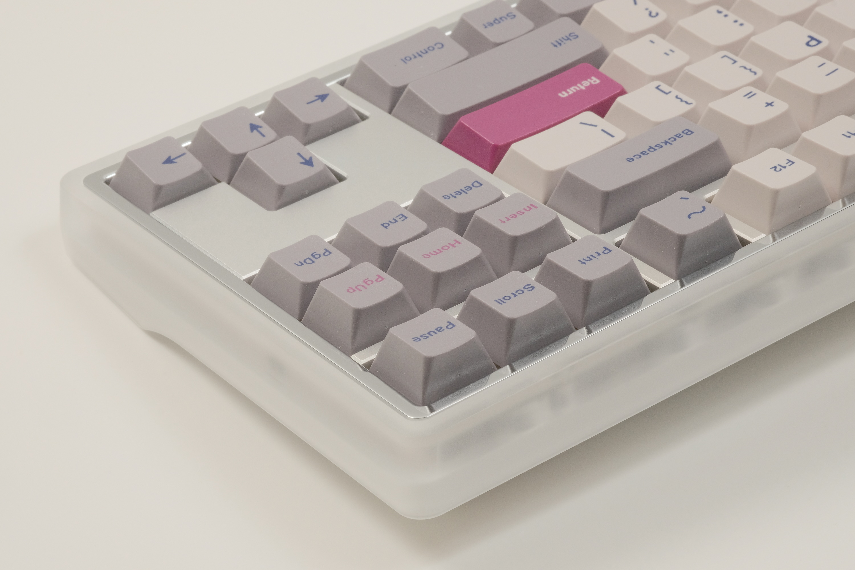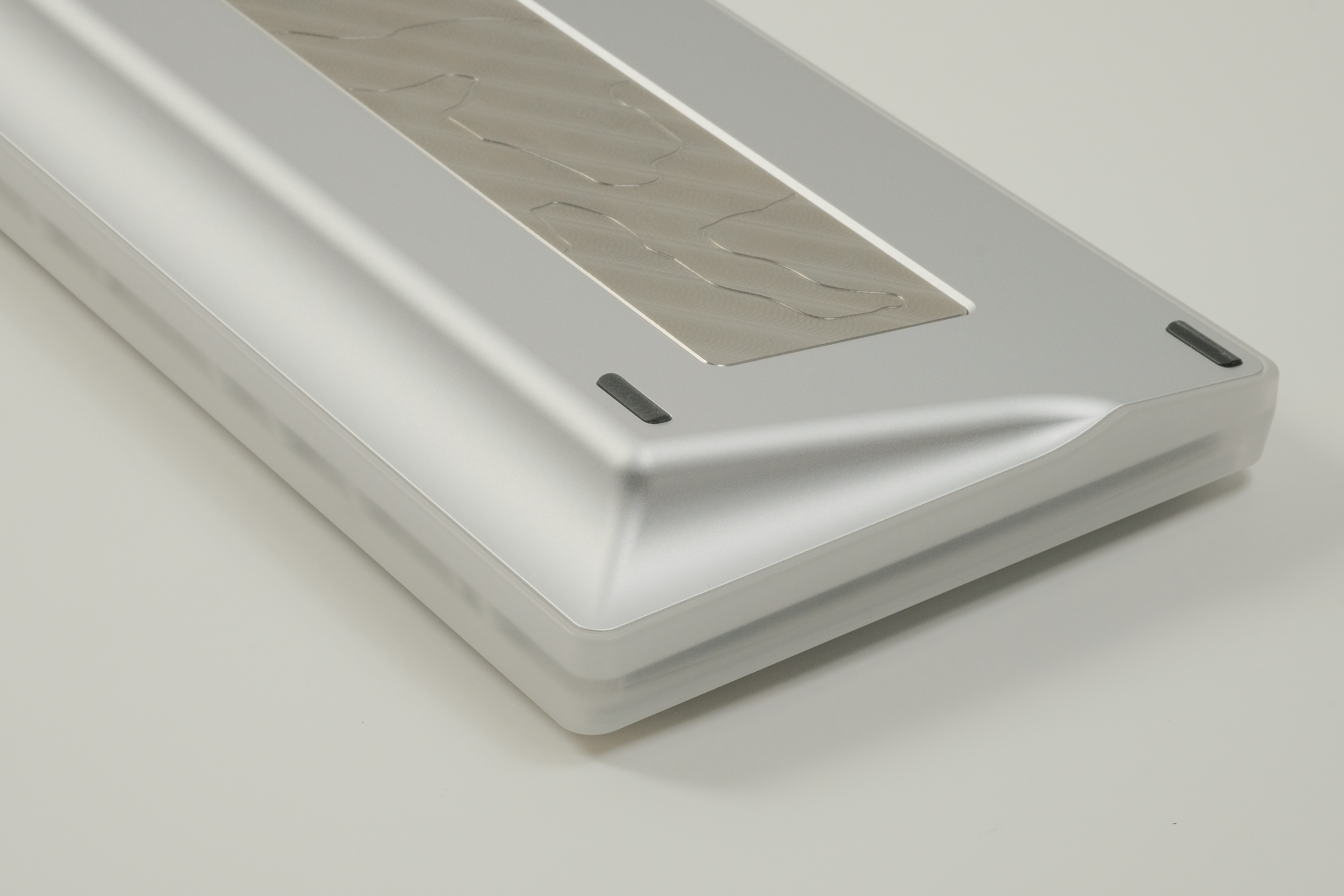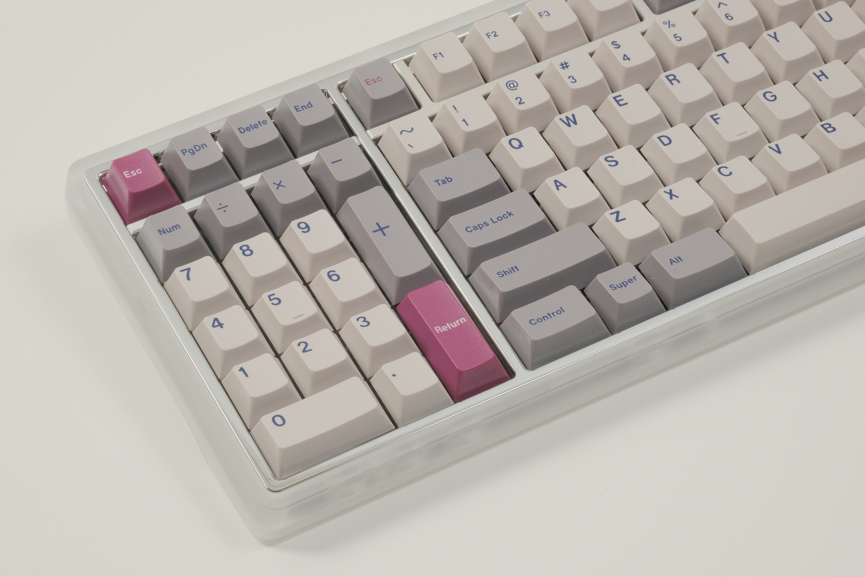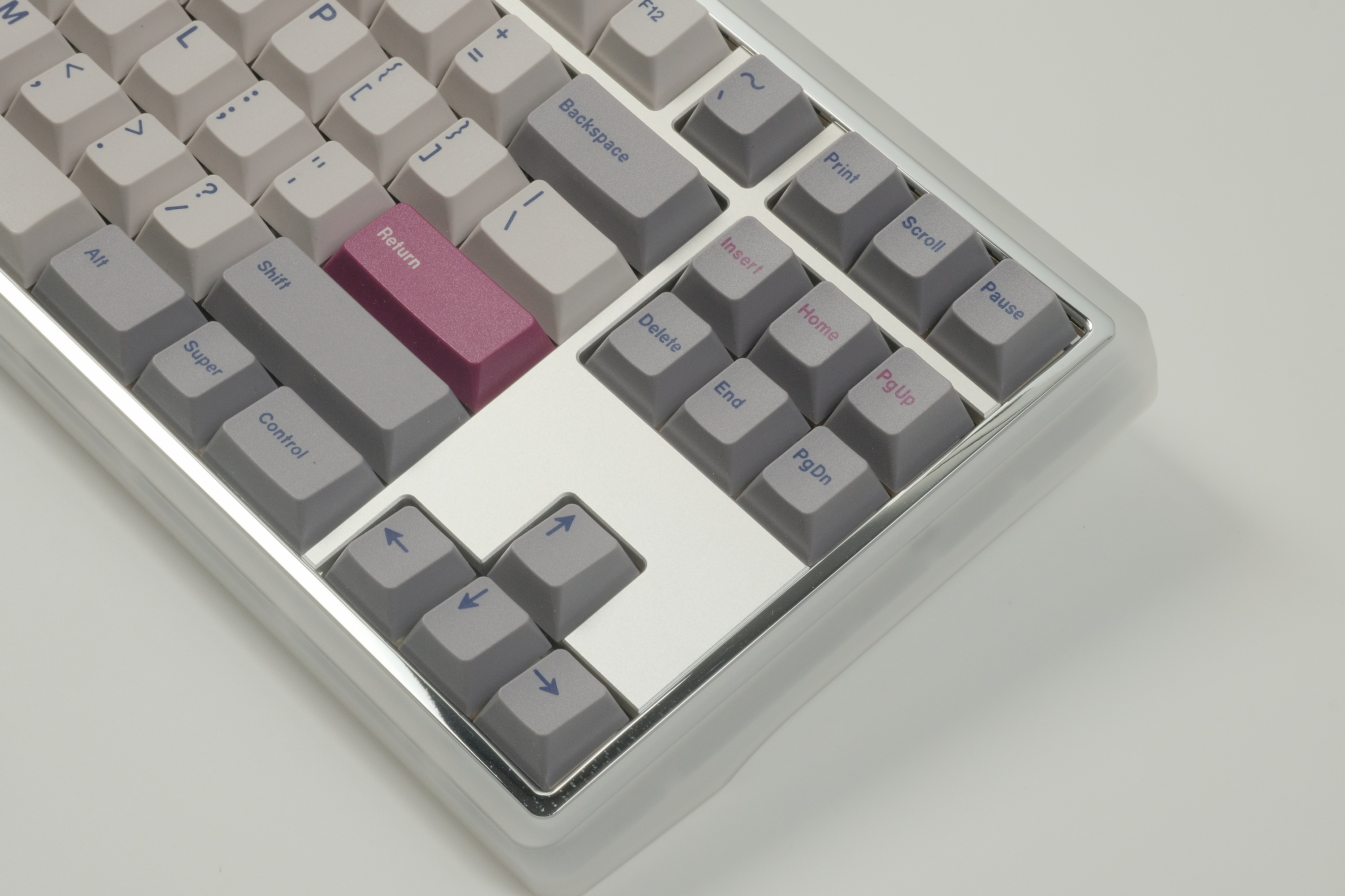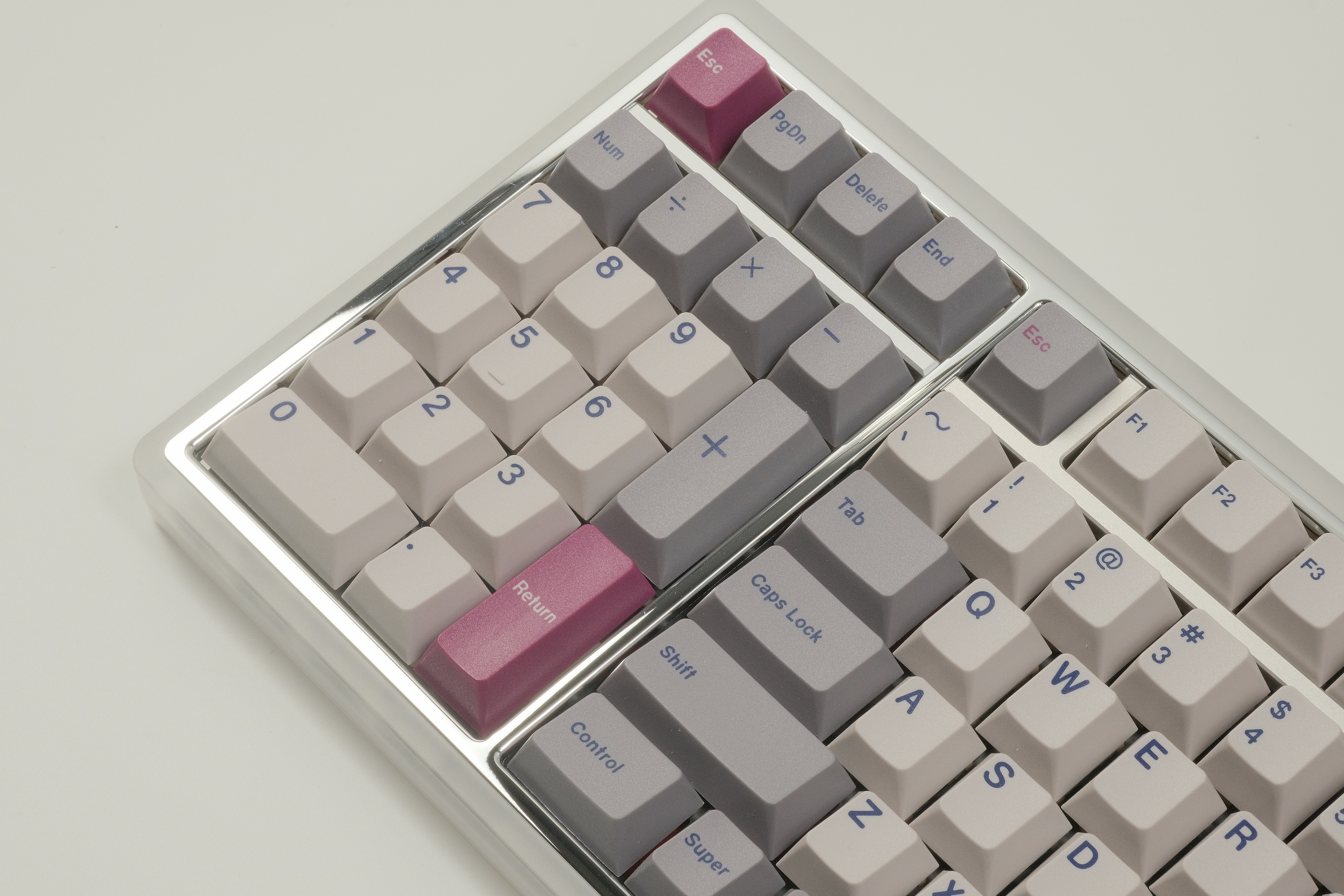 Pangea Full Size เป็นแบร์โบนที่ประกอบได้สนุก ปรับเปลี่ยน numpad ได้หลากหลาย ย้ายมาซ้ายก็"ด้ หรือจะเอาไว้ขวาก็ลงตัวครับ ... ตัวนี้เป็นสี Glagier ด้านล่างเป็นอลูฯ ด้านบนเป็นอคริลิคใสๆ ขุ่นๆ เพิ่มความลักซูรีด้วยขอบโครเมียมสีเงินวิ่งโดยรอบ ... เซ็ตนี้ใช้คีย์แค้ปเป็น GMK CYL DMG 3 จัดว่ามีความลงตัวเป็นอย่างดีครับ