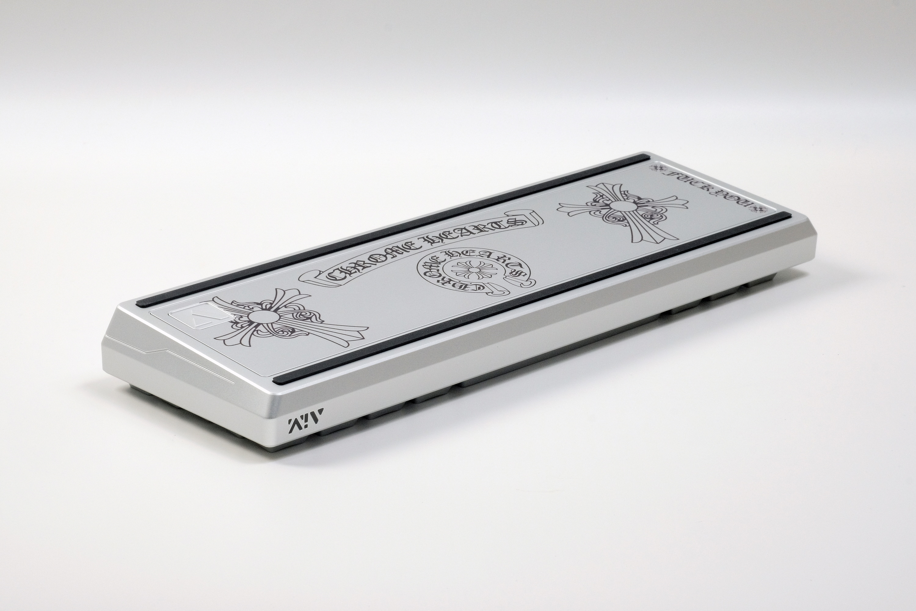 บอดี้สีเงิน ปกติใส่คีย์แค้ปอะไรก็เกิดอยู่แล้ว ยิ่งถ้าลองมาจับคู่กับคีย์แค้ปสีโทนซิลเวอร์ด้วยแล้วนะ ยิ่งเร่งปฏิกิริยาความลงตัวให้เพิ่มมากขึ้นไปอีก ... เคสตัวนี้เป็น AIM60x คัสตอมลายด้านหลัง ให้สอดรับกับคีย์แค้ปครับ